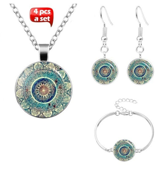 4pcs Vintage Mandala Flower Gemstone Jewelry Set
