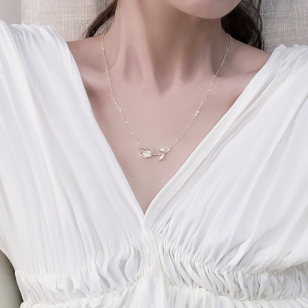 This 14K gold-plated rose flower necklace features a delicate water wave chain and a detailed floral pendant inlaid with opal zircon for subtle sparkle. Adjustable from 51cm to 80cm, it suits various necklines and styles. Crafted with durable alloy and premium plating, it offers lasting elegance - perfect for special occasions or thoughtful gifts. This necklace comes ready to impress and elevate any jewelry collection.